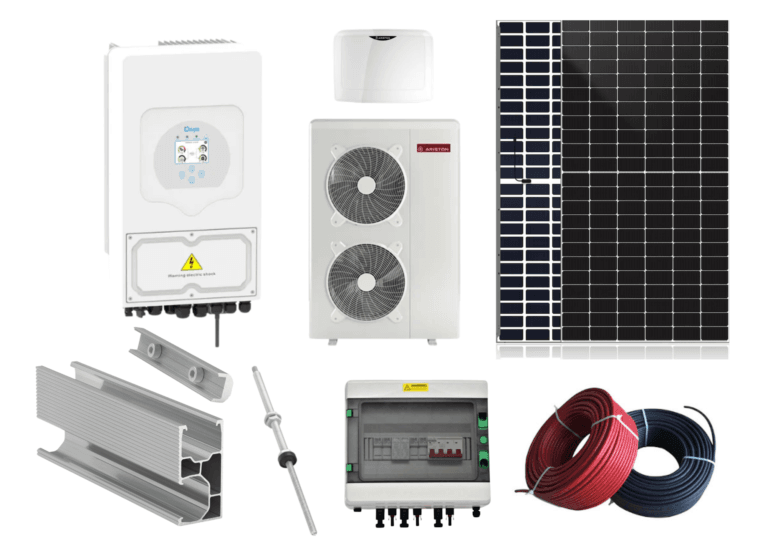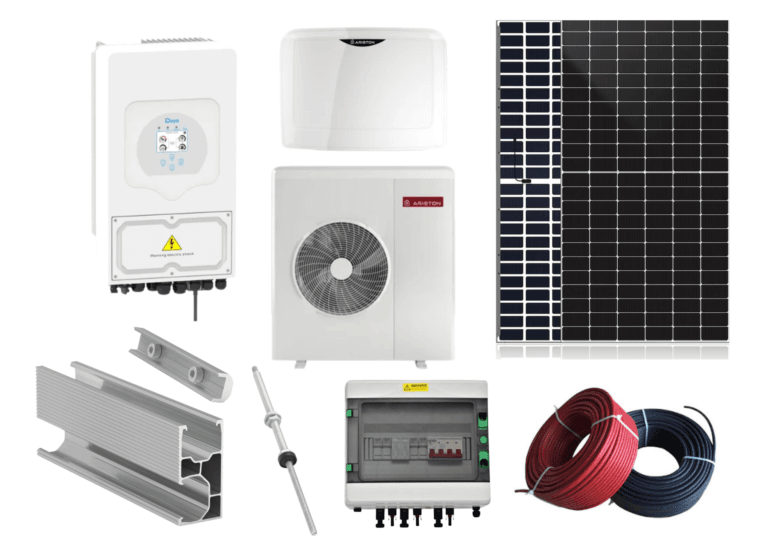 Kit Pompa De Caldura Monobloc Ariston Nimbus Pocket 50 M NET R32 + Kit Sistem Fotovoltaic Monofazat 6kw Fara Stocare, Invertor Hibrid Deye 6kw, 13 Panouri Canadian Solar 455W Cu Montaj Inclus oferă soluția completă pentru încălzire eficientă și energie verde. Sistemul asigură economii la facturile de energie și autonomie energetică pentru locuința ta.